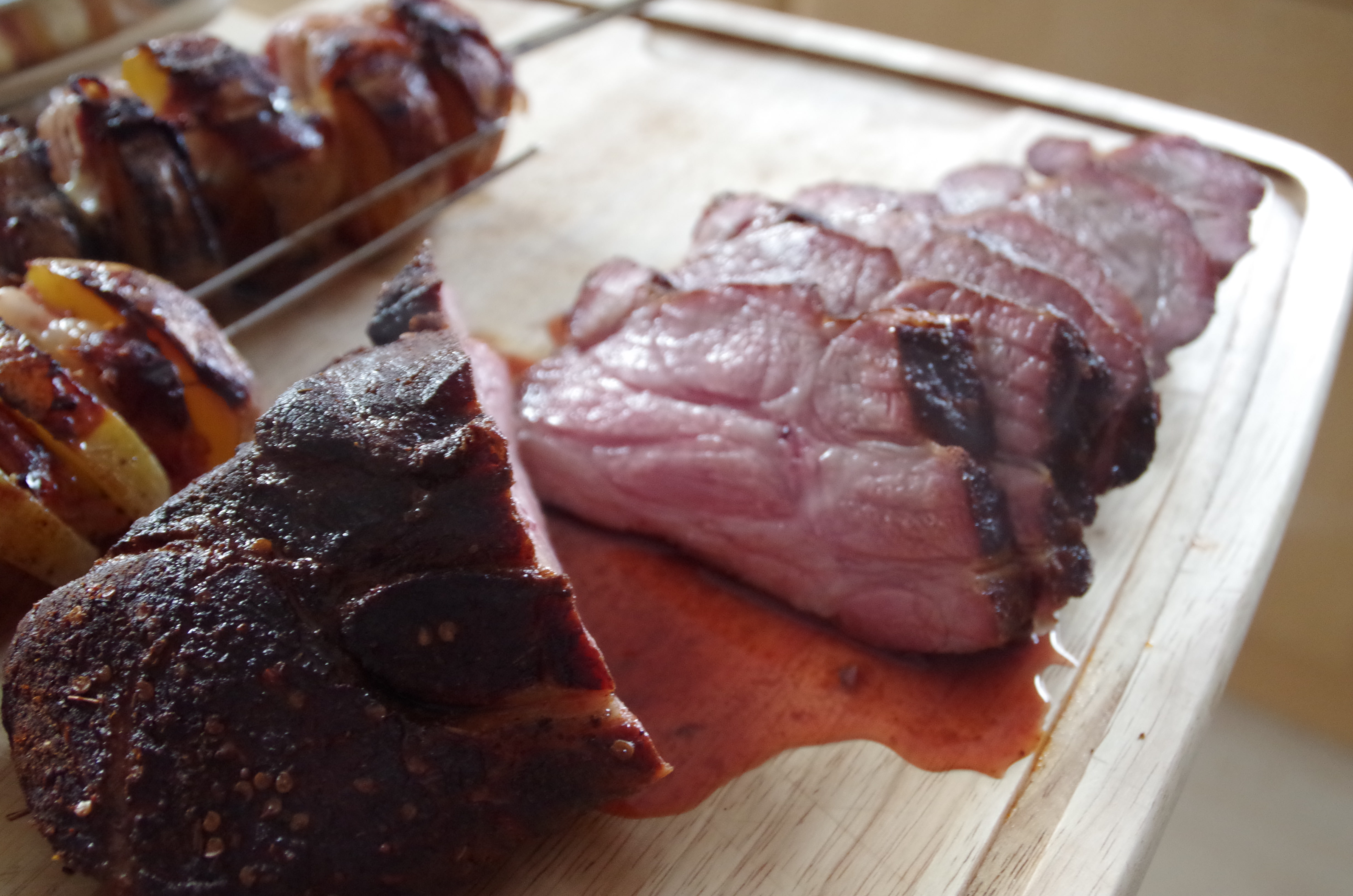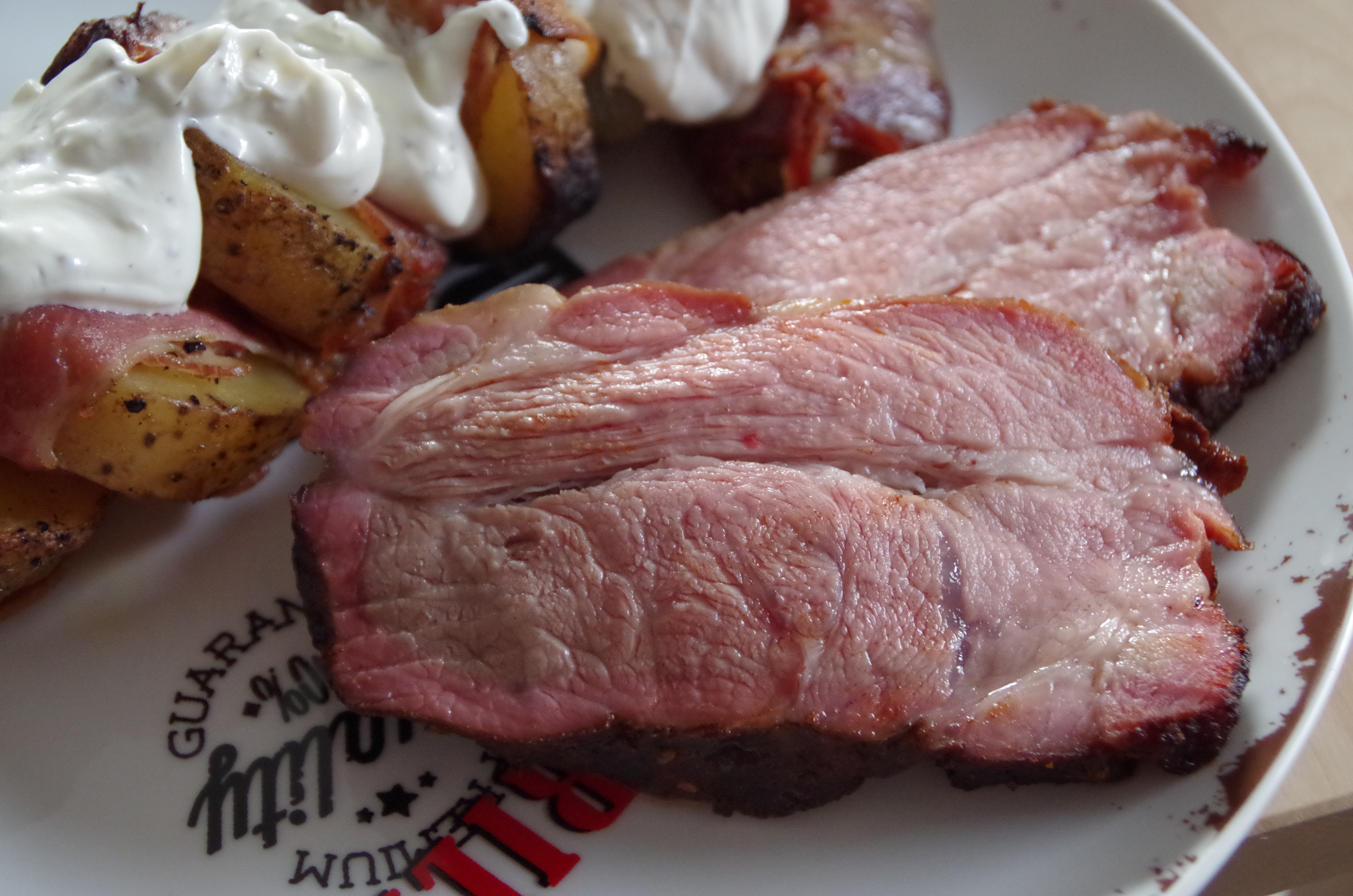 Mal ein kleines Stück Schweinenacken mit dem Rub getestet .