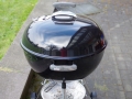 Es ist ein Weber one Touch mit 57 cm Durchmesser. Ohne sonstigen Schnick und Schnack, kein Deckelthermometer oder sonstiger Luxus. Ich wollte einfach nur den Grill, den wohl die meisten zu Hause stehen haben. Ich habe auch schon das Kettle Modell mal gestestet aber ich finde mit den Flügeln kann man die Temperatur doch etwas besser Regeln.