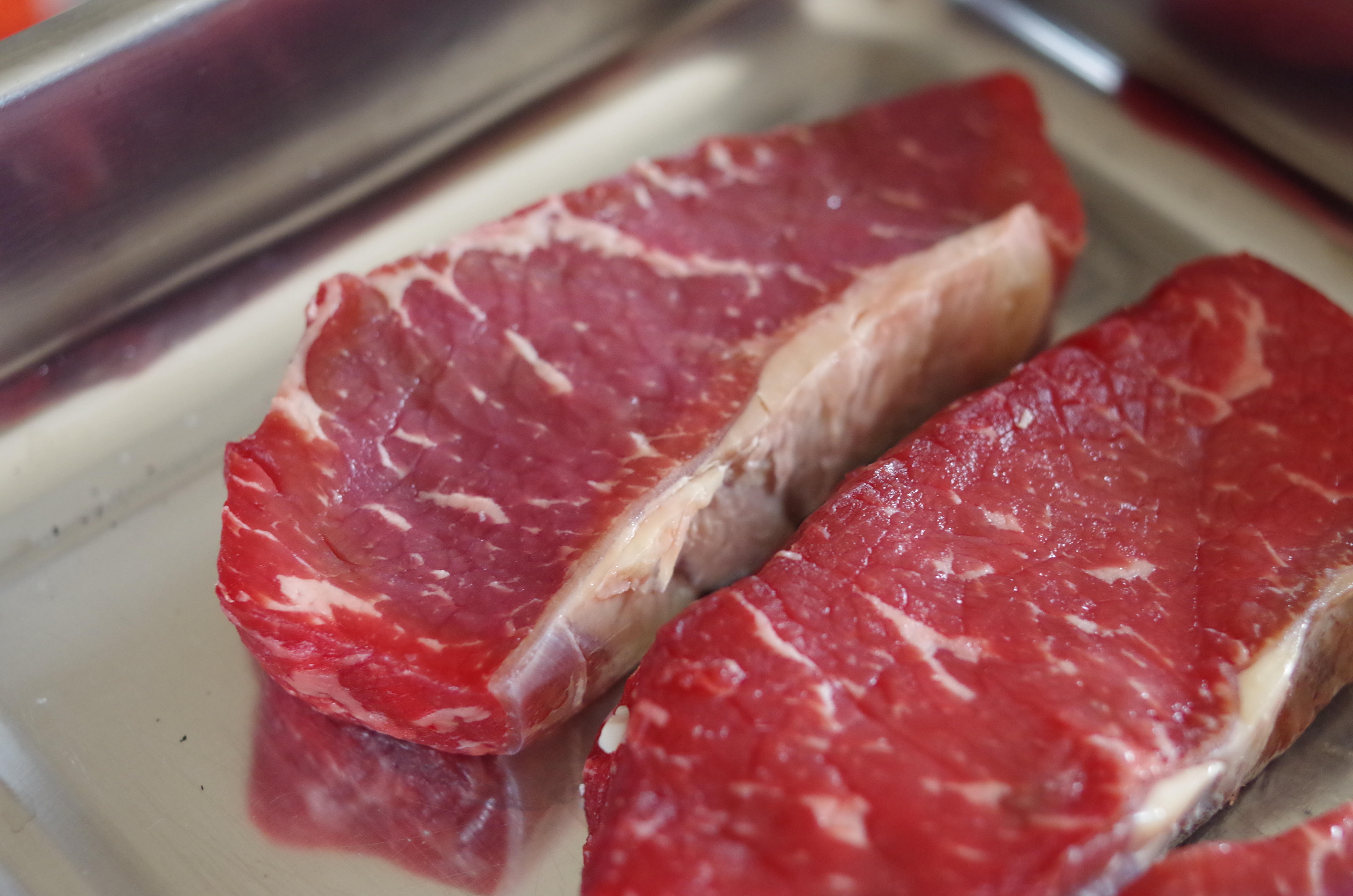 Als erstes mal zu Dry age, das Fleisch wird nach dem Schlachten in eine Kammer mit einer festen Luftfeuchtigkeit (60-90%) und Temperatur (0 – 3°C) für eine bestimmte Zeit (28 – X Tage) verbracht. Dort setzt ein Reifeprozess ein. Der Gewichtsverlust des Fleisches durch das Wasser liegt bei ca 30%, das erklärt auch den höheren Preis. Trocken gereiftes Fleisch verhält sich anders als normal gereiftes Fleisch. Wenn man es mit dem Finger eindrückt sollte der Abdruck zu sehen bleiben, das zeigt wie viel Wasser das Fleisch verloren hat.